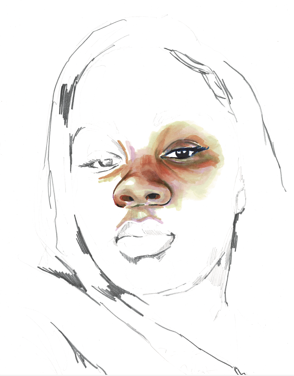 Adrian's work focuses on the many variations of the Black experiences, from the ‘unique joy, swagger and love’ to the injustices the Black community faces. His Stolen series is dedicated to the victims of police brutality, where he discusses that much of America has ‘become numb to the loss of Black lives.’ To combat this numbness Adrian uses the format of time to define how long he will colour a portrait in for; one year in life equals one minute of colouring. Sadly they will never know what the rest of their lives held, and thus we will never see their fully-coloured portraits.